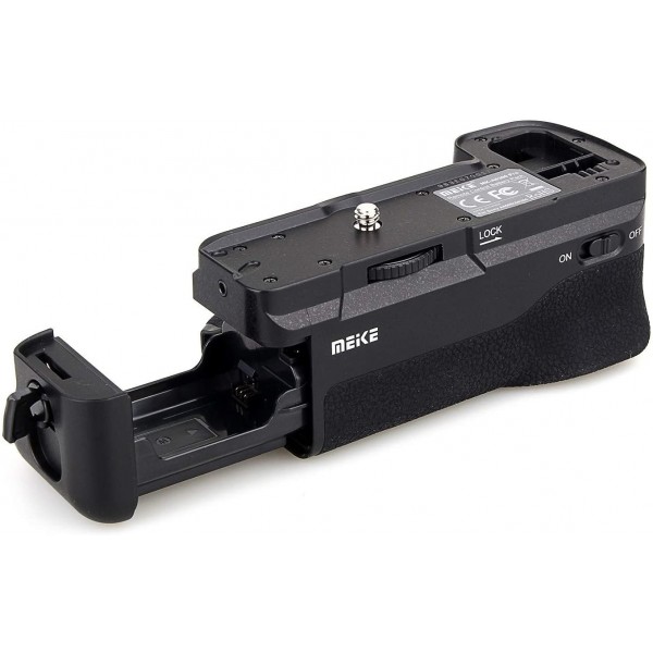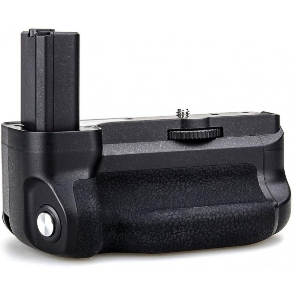 Le grip batterie est équipé d'un déclencheur à poignée verticale, d'une molette principale, d'un bouton de verrouillage AE / verrouillage FE / d'index / de réduction, de sélection AF / bouton d'agrandissement, d'un bouton de compensation d'ouverture / d'exposition, de vis de fixation pour trépied 1/4 ".